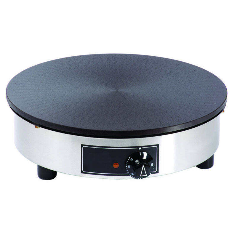 La plaque en fonte nervurée est chauffée par une résistance en serpentin. Cela permet une parfaite répartition de la chauffe sur toute la surface de la crêpière et une température constante. Le thermostat est réglable de 50°C à 300°C. Cet appareil professionnel est facile d'entretien. Pour plus de sécurité, il est muni d'un témoin de chauffe.